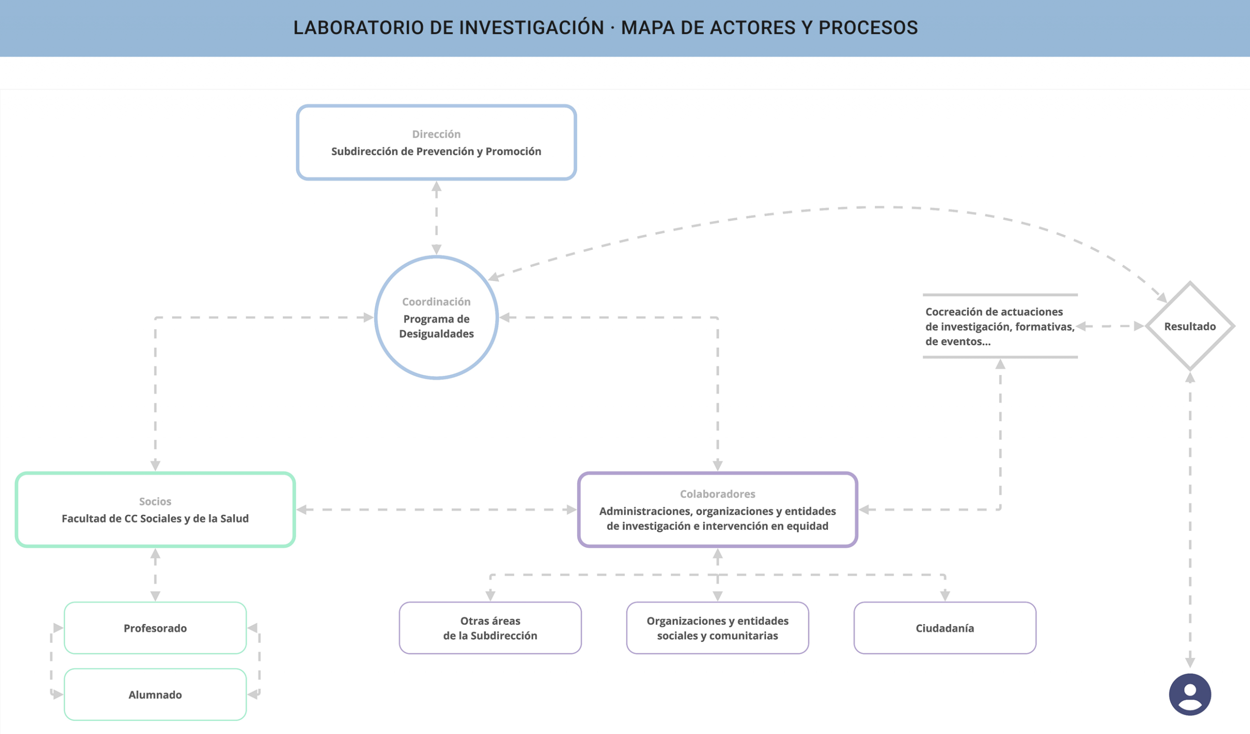 Desde ahí, el laboratorio se concibió como una herramienta para impulsar conocimiento, colaboración y participación desde el enfoque de equidad en salud. La necesidad de fondo estaba clara: superar la fragmentación entre ámbitos, mejorar la accesibilidad del conocimiento y construir mecanismos de cooperación más sólidos entre administración, universidad, tejido social y ciudadanía.